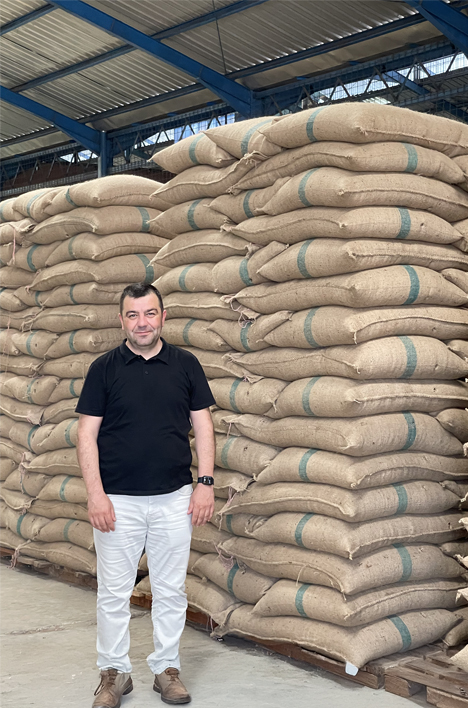 The selected green coffee beans are prepared for roasting and packaged to maintain their moisture balance.